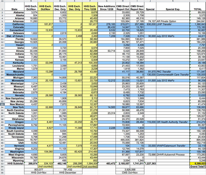 And again, this still doesn't include the 9th cell, which is direct enrollments for any state in December, although I presume that some of the additions in column G probably represent some of these.