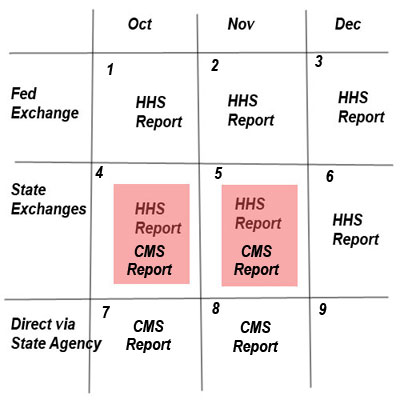 As you can see, the HHS report covers all 3 months, but doesn't include direct enrollments. On the other hand, the CMS reports include direct enrollments and state-based exchange enrollments, but only for October and November.