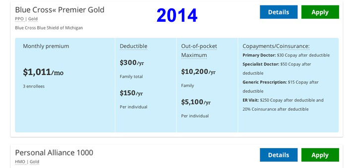 - I've already plugged in my own family's current BCBSM policy to compare it against 2014. In our case, the full price (without any tax credits) has gone up by 7.4%: