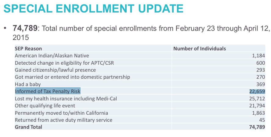 In other words, this news out of California strongly supports my estimate that at least 7,000 people are enrolling nationally every day, during the off-season, not including the #ACATaxTime SEP.