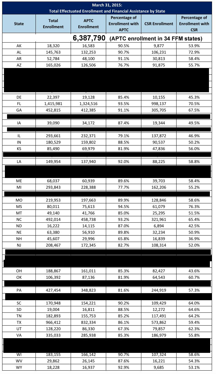 The "good" news is that about 49,000 fewer people were enrolled in effectuated accounts in those 34 states as of March 31st than I thought (6,387,790 vs. my 6,433,000).