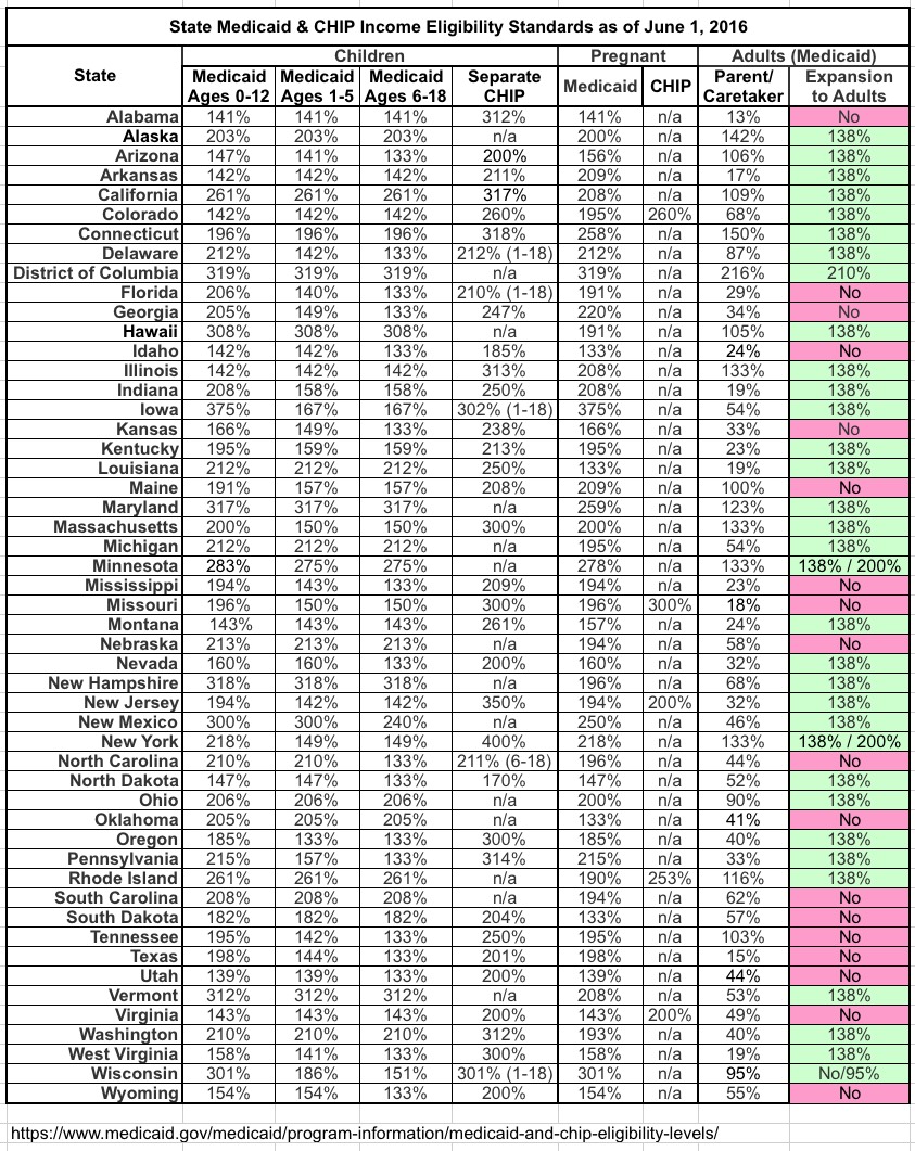 UPDATE 9/8/17: I've updated the eligibility table with the most recent version from the Medicaid website: