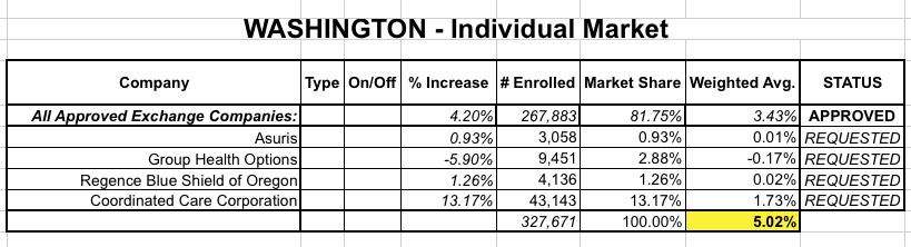 Way back in early June, Washington State reported that the overall average requested individual market rate increases for 2016 came in at 5.4%, which is pretty darned good.
