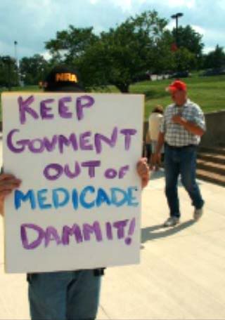 Yup. 20 years from now, I guarantee you Republicans will be running around waving misspelled signs reading "GET YOUR GOVERNMENT HANDS OFF MY OBAMACARE!!" with absolutely zero irony or reflection. (photos via rwnj.org, JimGinPA & Dawn Teo)