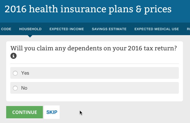 The way it works is pretty clever (and presumably modelled after similar tools on Covered California and a couple of other State-Based Exchanges. You choose from "Low", "Medium" or "High" expected medical needs for the upcoming year for each person in the household.
