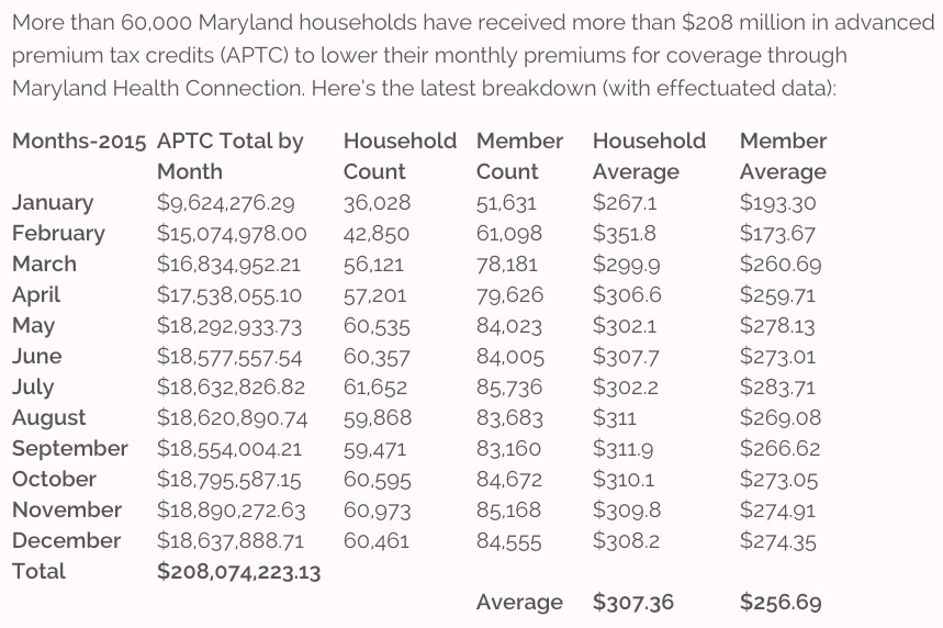 Now, this isn't quite accurate, because the roughly 30% of Marylanders who aren't receiving APTC assistance aren't included here. It's conceivable that those paying full price have dropped off, more than cancelling out the net gains in APTC enrollees.