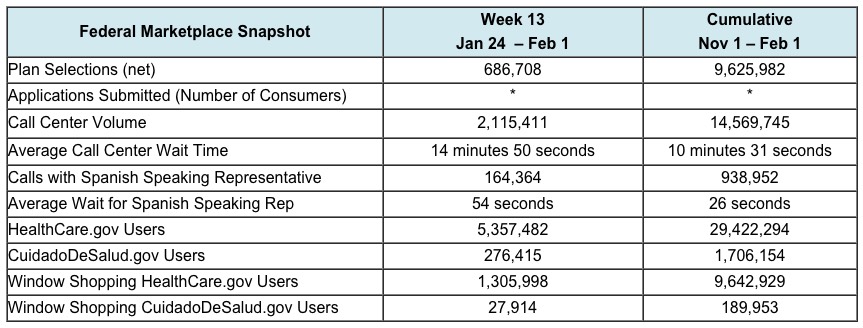 The Week 13 Open Enrollment Snapshot extends through 11:59pm EST on Monday, February 1, instead of through the January 31 deadline, to better capture consumers who may have been in line. This is the final snapshot for 2016 Open Enrollment.