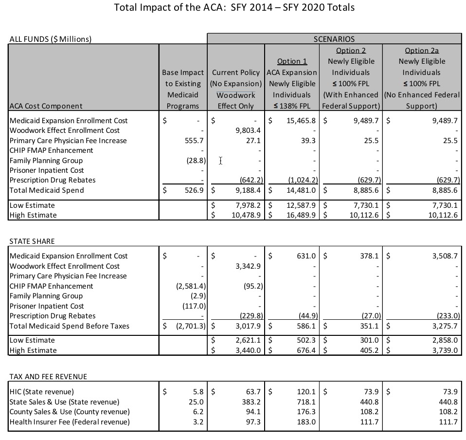 The Mercer study even breaks out estimates of how much they feel the "woodwork effect" would have on the state budget...and as you can see, while they figured the total cost would be around $9.8 billion from 2014 - 2020, the state share of that would only amount to around $3.3 billion...over 7 years: