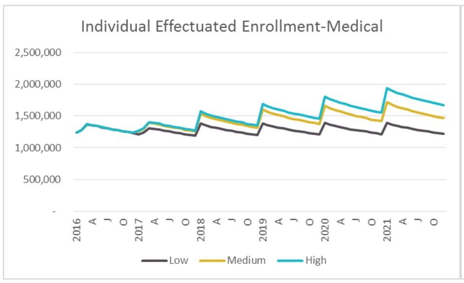 Among the lessons learned from previous years is that 80 percent of new enrollees during open enrollment will pay at least their first month’s premium. Likewise, during special enrollment on average 69 percent of enrollees will make their first payment. These rates are comparable to those used in previous forecasts.