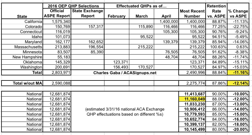 Even if the 1.4 million number was only as of the end of March, that's still good news, as it suggests that the national effectuation rate at the end of March, which I had been concerned might have fallen below the 11 million mark, should still be at around 11.2 million or so: