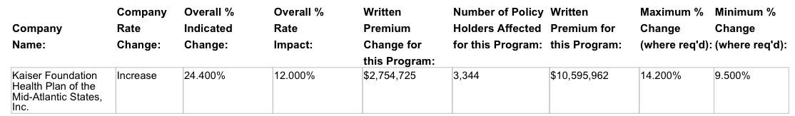 Ignoring the small group correction, I'm not sure how CareFirst could be asking for an average of 13.3% on their HMO plans when the highest requested HMO increase shown above is 12.7%, but there you have it.