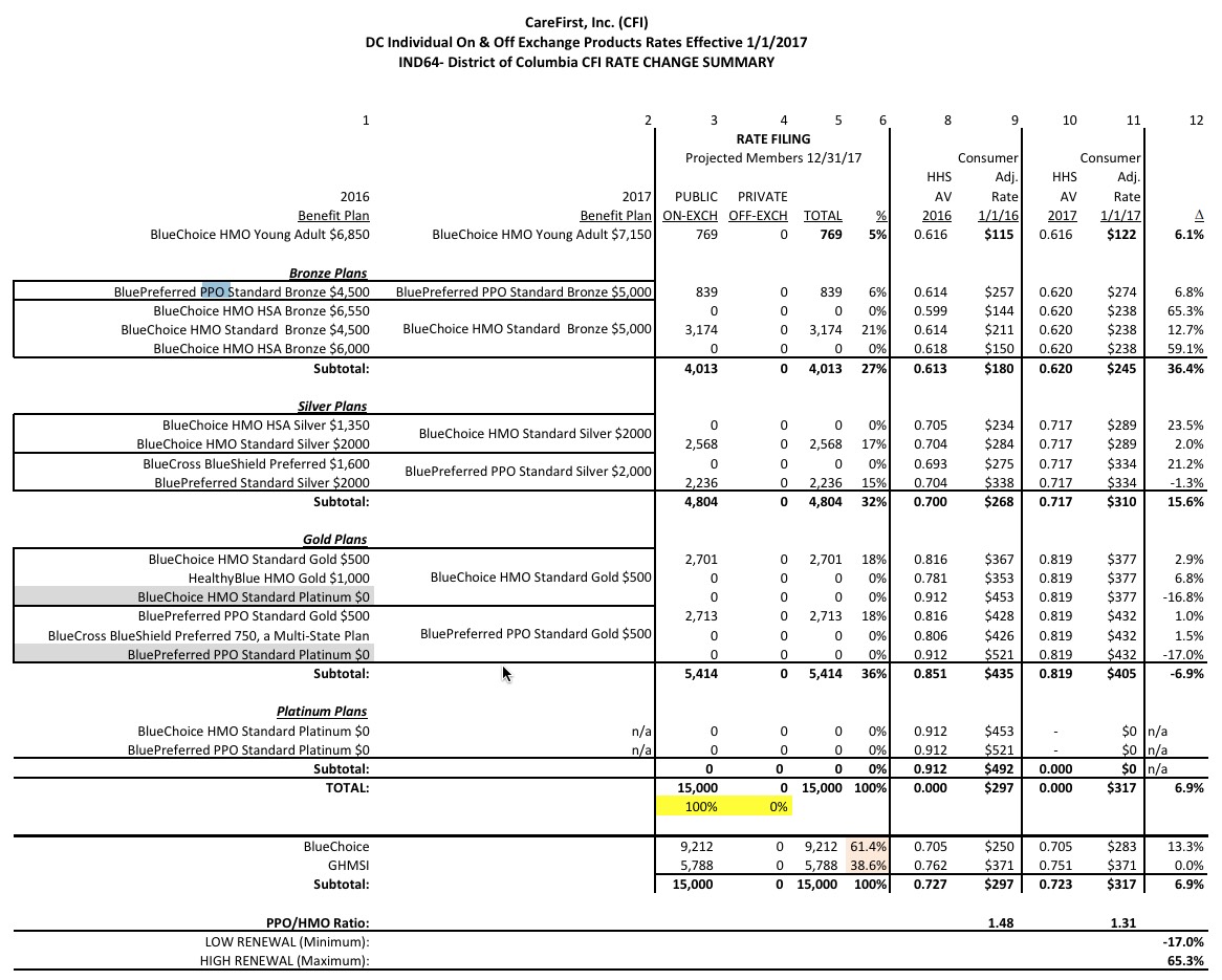 However, the CareFirst HMO filing does seem to indicated 5,788 people in PPOs based on the Rate Change Summary (see below).