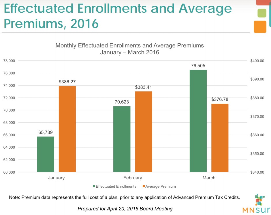 - 3/07/16 - 4/17/16: 90,696 QHPs Cumulative since 11/01/15 (+3,840, or 91/day); 55,357 MNcare; 156,983 Medicaid