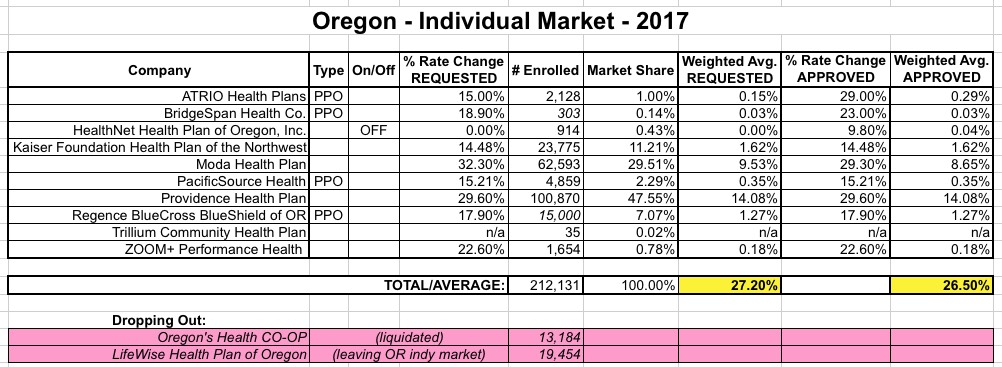 Regular readers may be a bit confused here, as Oregon's insurance dept. had already approved 2017 rates back in early August, for a statewide average of around 23.8%.