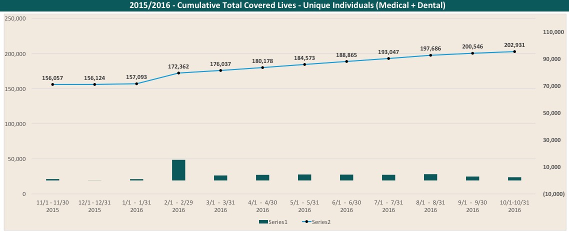 As a result, I've started simply presenting them without much commentary. Here's the October report (remember, this is for currently enrolled 2016 policies, not 2017 Open Enrollment policies: