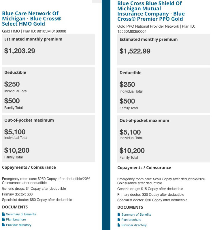 Thanks to the new Network Lookup Tool introduced last year, we plugged in each of our doctors, hospitals and prescription drugs and were pleasantly surprised to discover that they're all covered within the network covered by BCBSMI's HMO division (Blue Care Network).