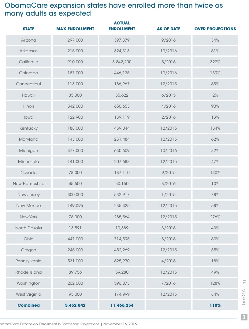 However, I was just informed of a new report released by the Foundation for Government Accountability, an anti-ACA think tank, which has compiled their own estimates of ACA Medicaid expansion enrollment on a state-by-state level. Here's what they've come up with: