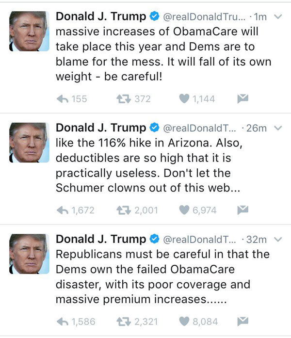 Hm. Is PEOTUS suggesting Republicans put off action on Obamacare repeal in order to let it "fall of its own weight"? pic.twitter.com/XJ0yWRNKhy