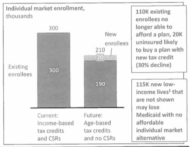 • ??% of current Medicaid expansion enrollees in expansion states (with some presumably being able to buy coverage with the revamped tax credit structure? I'm not exactly sure how they're figuring this).