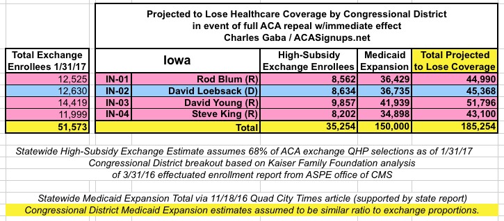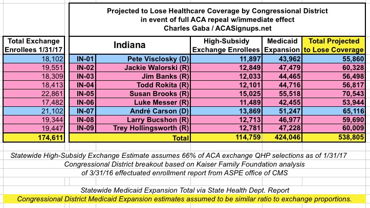 - UPDATE 2/19/17: INDIANA now added.(Important caveat: The Medicaid Expansion total may be ~74,000 too high; will correct if I receive confirmation of this)