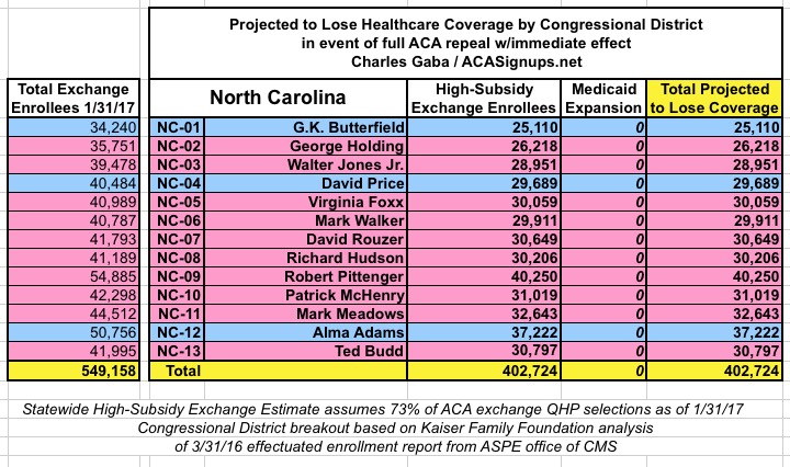 MAJOR UPDATE 3/22/17: As I've noted repeatedly, my estimates of how many people are at risk of losing their coverage has always been based on the assumption of full repeal with immediate effect and, most importantly, no replacement healthcare policy whatsoever. I had to do it this way at first because there was no Republican replacement plan available until a couple of weeks ago. Then, when the AHCA plan was released, I didn't have the time or expertise to properly overhaul my projections accordingly.