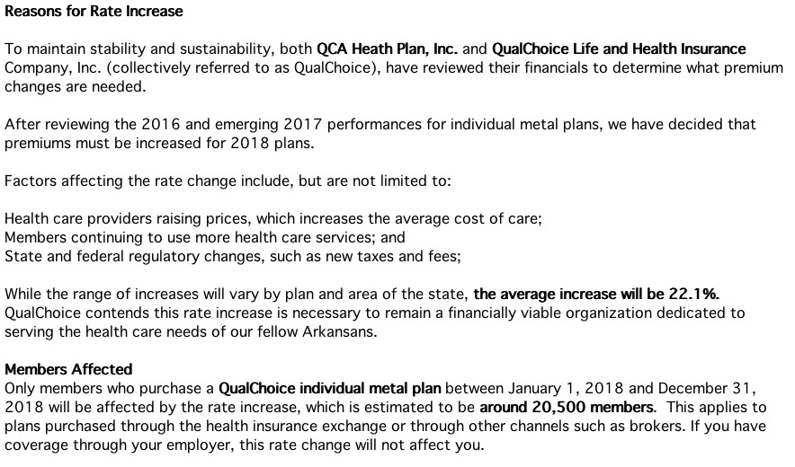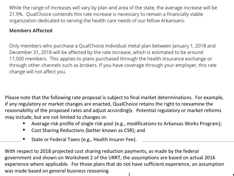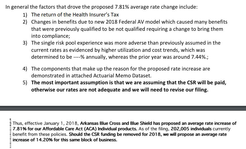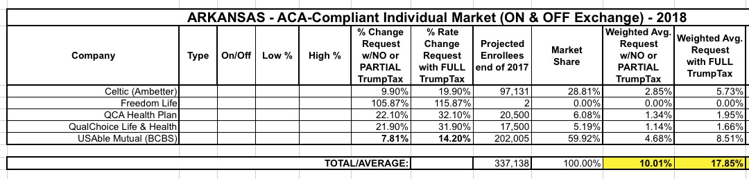 2018 Rate Hikes: Arkansas: 10% without CSR sabotage, 18% with.