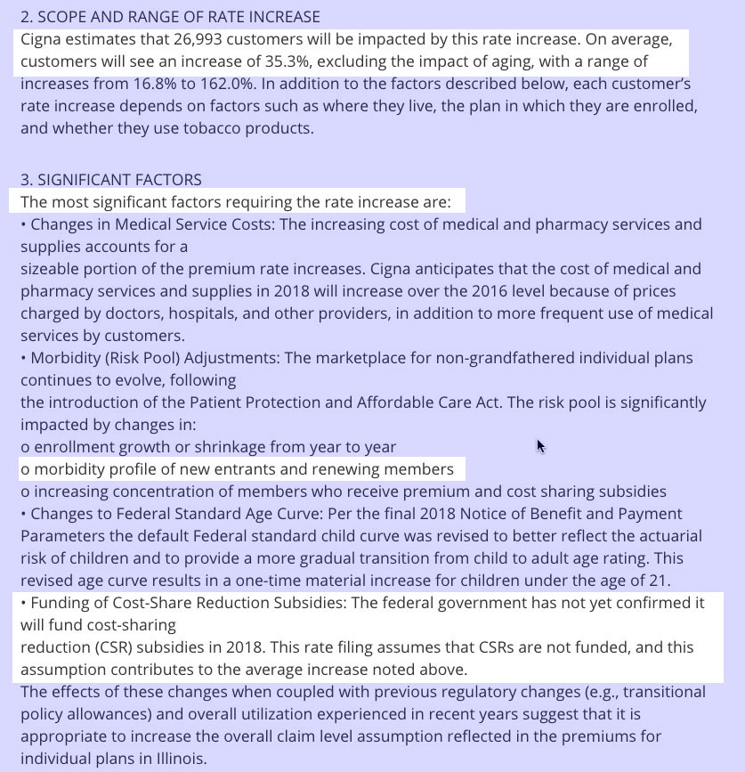 Another major state: Illinois. I've decided to scrap the "Low/High Increase" columns since they just confused people and made the table too wide, but replaced them with a new column showing the CSR factor estimate according to the Kaiser Family Foundation. Note that the percent listed will be smaller than Kaiser's estimate for each state, because their numbers only apply to silver plans, not all metal levels.