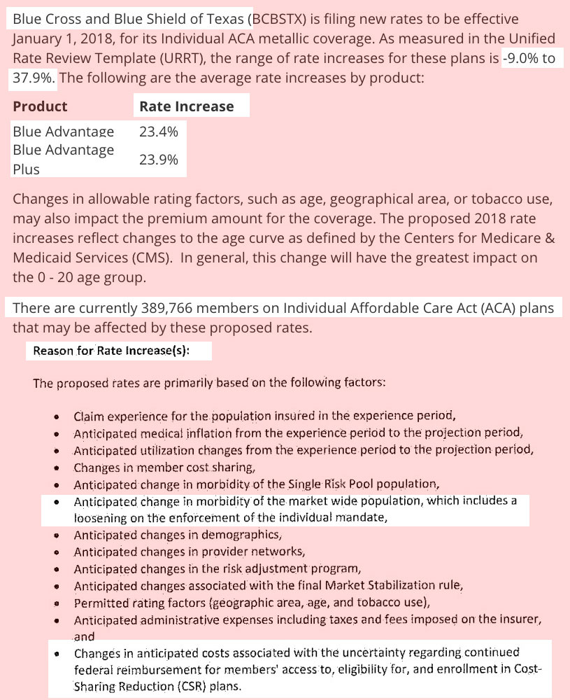 With those caveats in mind, it looks like the Lonestar State is seeking 20.2% average unsubsidized rate hikes if CSR payments are made, or 32.5% increases if they aren't: