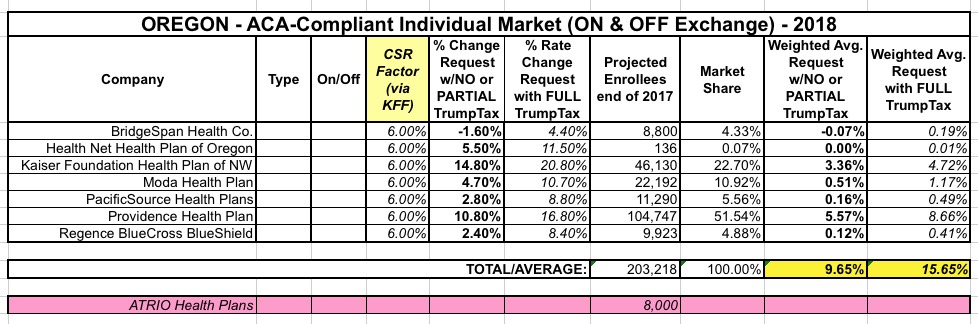 It's worth noting that Oregon's proposed rate changes have been approved for 2018 and reflect a state-level reinsurance program similar to those in Alaska and Minnesota: