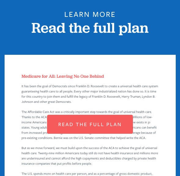 If you visit BernieSanders.com and click on the "Issues" tab today, you can still find his official 2016 campaign "Medicare for All" plan, without a single word changed.