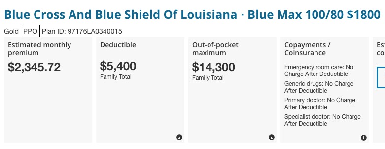 That's a BCBSLA Gold PPO plan costing $1,173/month, or $14,076/year. Not even close to $40,000.