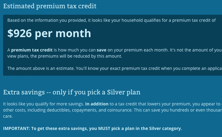• 450% FPL ($91,890): DOESN'T QUALIFY FOR ANY TAX CREDITS EITHER YEAR.
