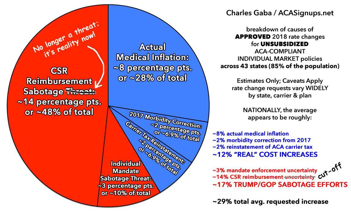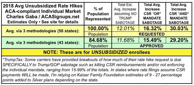 OK, so what about 2018 plans? Well, I've been touting these graphics for some time now, with the average bobbling between 29-30% depending on how many states I had baked into the total and whether I was including requested rate increases or approved ones:
