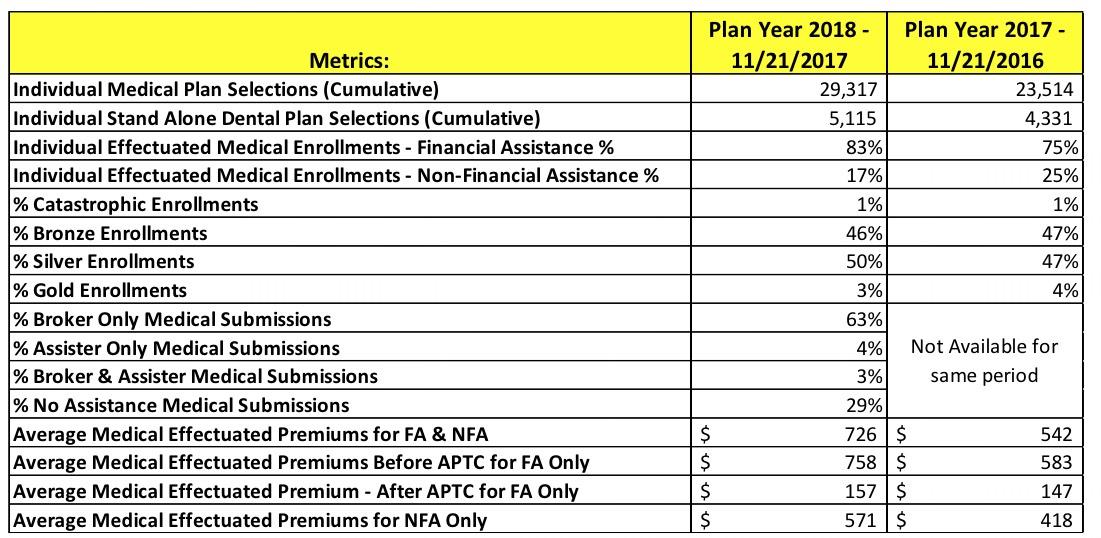 - As of 11/21/17, 83% o fthe 29,317 enrollees are subsidized, or 24,333, while 4,984 are unsubsidized.