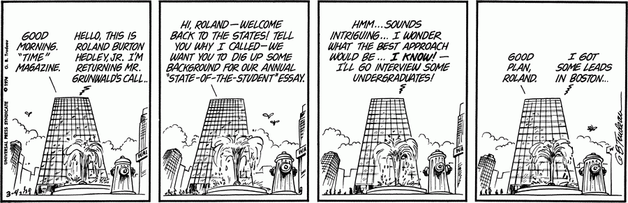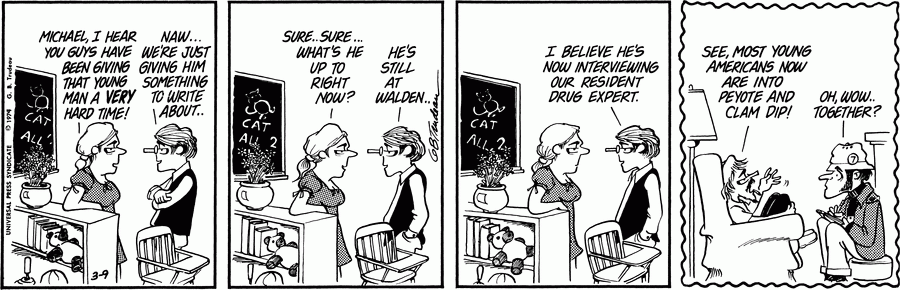 Don't get me wrong, some of the other quotes appear to be from people who are legitimately happy with the extra cash, so I can't rip on the reporter herself too much, but in the case of Ms. Ketchum, at least, it definitely sounds like she and Mr. Ryan have been taken in by something which is more commonly referred to as "yanking their chain" or "messing with their heads". I'm reminded of an old Doonesbury series: