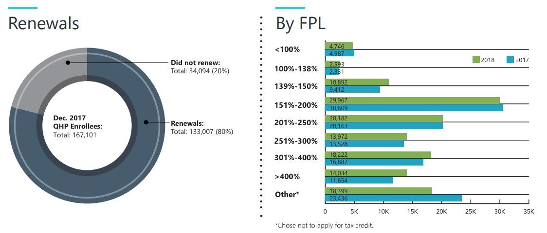 The report also notes that individuals’ average net premiums increased by $66 per month over last year, with customers making more than 400 percent of the federal poverty level experiencing the highest increases. However, those customers whose income was at or below that threshold saw their average monthly tax credit amount climb to $263 – an increase of $75 per month from 2017.