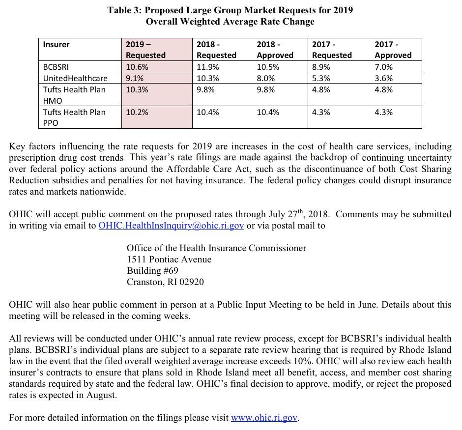 Rhode Island: Preliminary 2019 ACA rate hike request: 9.3%, 1 point due to mandate repeal (updated)