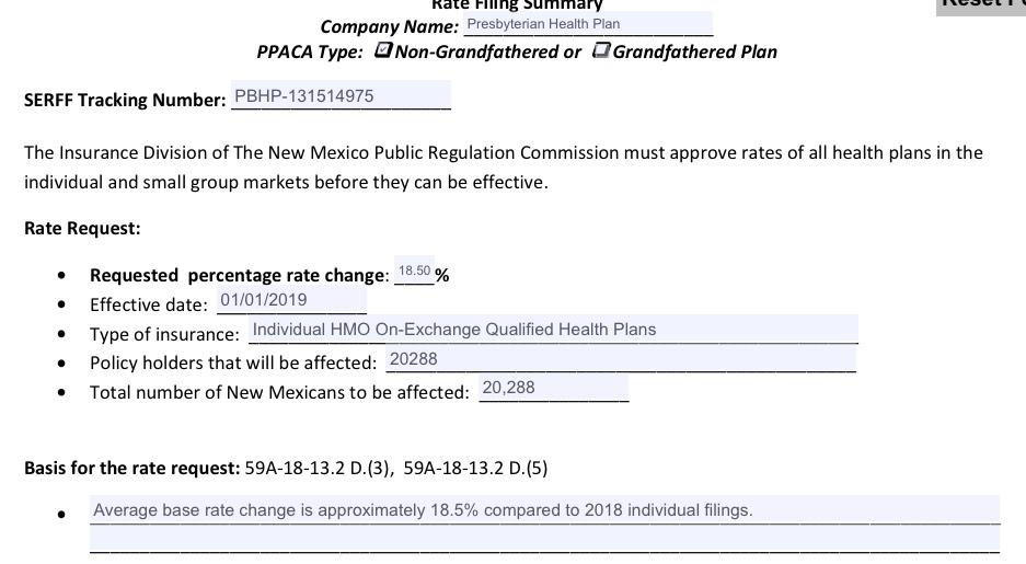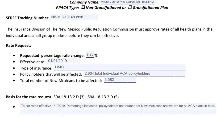 New Mexico: Preliminary 2019 ACA rate hike request:10%; est. ~6% due specifically to ACA sabotage