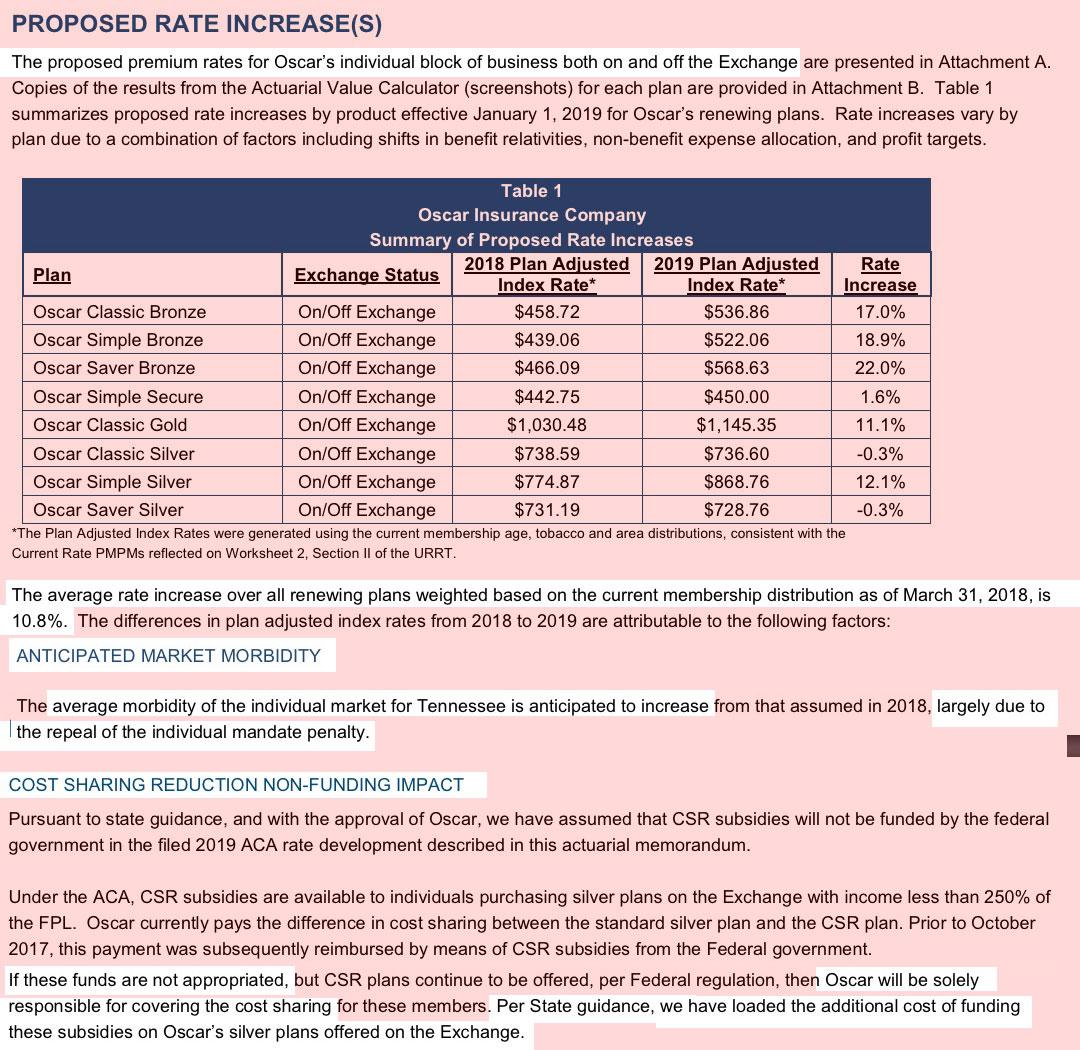 Remember, the RA thing is on top of the other big sabotage factors this year: Repeal of the ACA's individual mandate and the expansion of #ShortAssPlans. Those are, as usual, specifically called out by most of the TN carriers as well. None of them break the impact out specifically, so I'm once again using my standard estimate: 2/3 of what the Urban Institute projected these factors to be. In the case of Tennessee, Urban estimated around 18.1 percentage points would be tacked on, so I'm assuming this to be around 12 points to err on the side of caution.