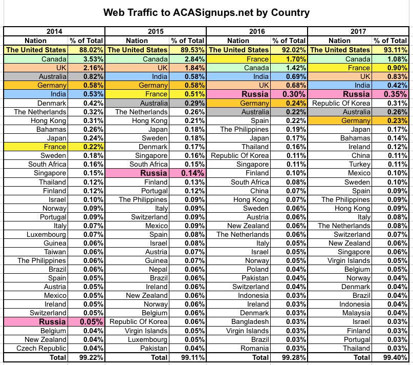 And then...there's Russia, which has jumped up the ladder from 32nd place (0.05% of all visitors) to 6th place (0.35%) the past two years running. Huh.