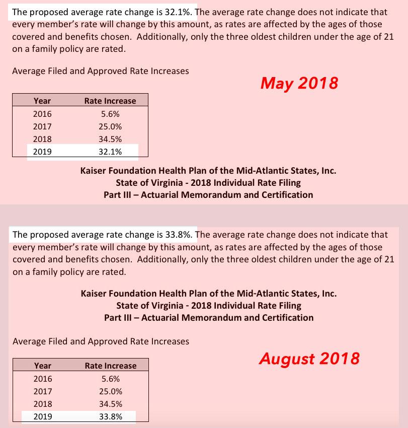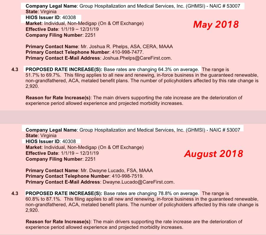 On the other hand, CareFirst has actually increased their 2019 rate hike request even more, as has Kaiser (slightly), so I could be wrong: