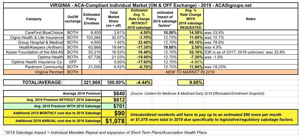 Virginia: APPROVED (?) 2019 #ACA rate hikes drop *another* 1.7 points; still would've been much lower w/out #ACASabotage