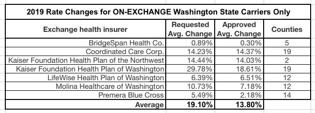 Today, Washington insurance commissioner Mike Kreidler announced the approved 2019 premium changes, and while the news certainly isn't great, it's not quite as bad as expected earlier this summer: