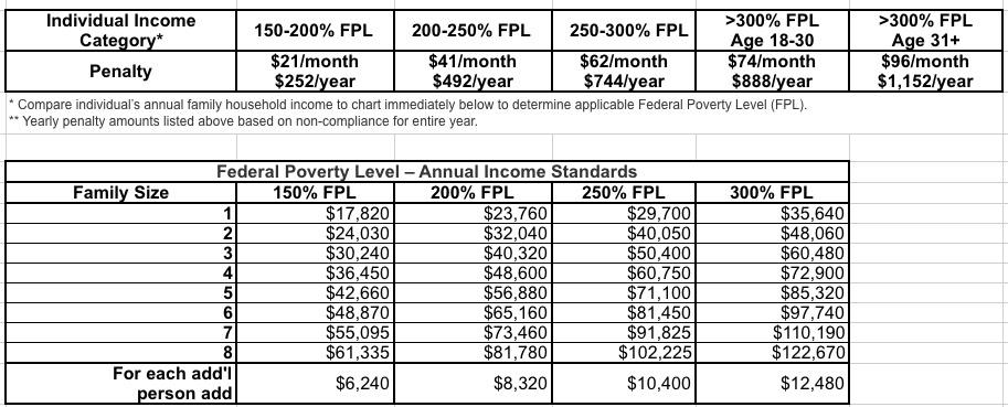 - If we earn $60,000/year (just under 300% FPL), we'd have to pay $2,232 (3x $744)
