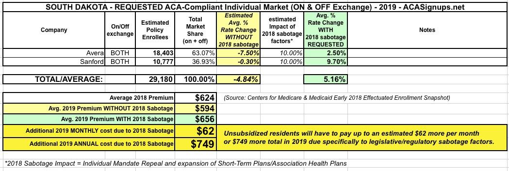 South Dakota: *APPROVED* 2019 #ACA rate increases: 5.2% (vs. likely 4.8% *drop* w/out #ACASabotage)