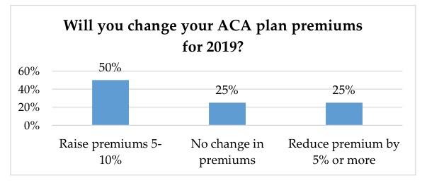 - More modest rate increases anticipated compared to prior years: 50 percent of respondents plan to raise premiums between 5 and 10 percent, while 25 percent plan to reduce premiums. Another 25 percent plan no change in premiums at all for 2019.
