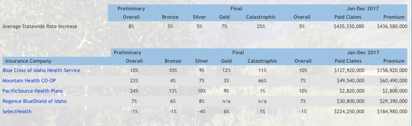A few days ago, the Idaho DOI issued their final/approved rate changes, knocking a few points off the hikes and bringing the weighted average increase down to 5%: