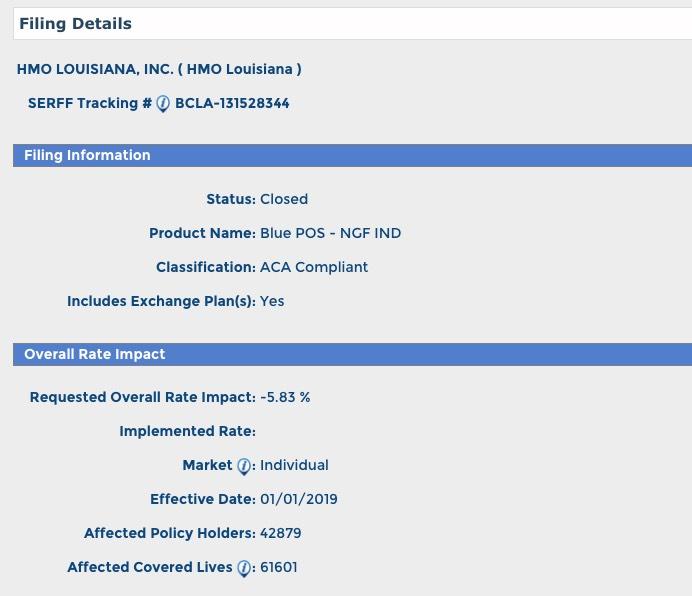 There was practically no change whatsoever between the rate changes requested by Louisiana carriers for the 2019 ACA individual market and the rates approved by the state insurance regulators. However, it's still good to be able to lock in the official rates just ahead of the Open Enrollment Period itself, including the individual filing data.