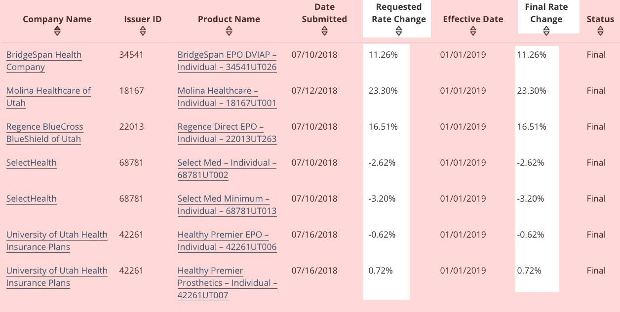 2019 Rate Hike Project Wrap-up: FINAL/APPROVED rate changes for Alabama, Mississippi & Utah