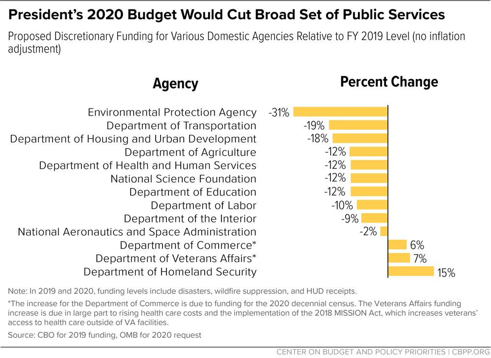 Budget debates work best when we play it straight with the numbers. This chart shows how deeply many agencies are cut. 6/6 #TrumpBudget